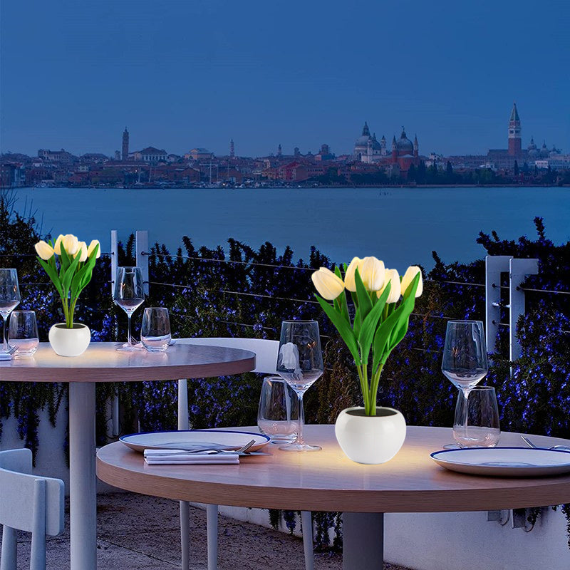 LED Tulip Flower Night Light Artificial Flowerpot Potted Plant Landscape Table Lamp Home Bedroom Living Room Decoration Gift